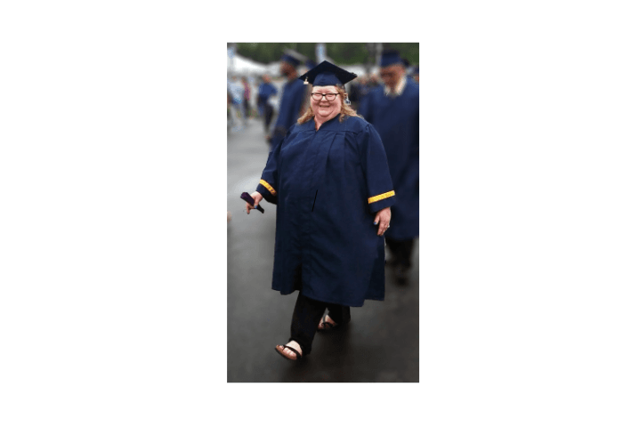 After leaving my job of nearly 40 years, I was given 6 months unemployment compensation and a free 9-month set of courses at our local community college. I was 60 years old and grateful for this long-awaited chance at higher education and decided that graphic design would be something I’d enjoy. If I was any good at design, I fancied I could work freelance in my old age to help subsidise my income. I sucked at web coding, did well with desktop publishing, and excelled in journalism which was an optional free course. And I made the Dean’s List; a prestigious listing of the top 10% of students! Some of my family suggested I should skip the graduation ceremony because “it’s mostly kids, won’t you be embarrassed? Hell no I’m not going to be embarrassed! I earned that right and I’m taking it. And though college was challenging, it was just what I needed to get myself out of a deep depression. I found structure and purpose again.